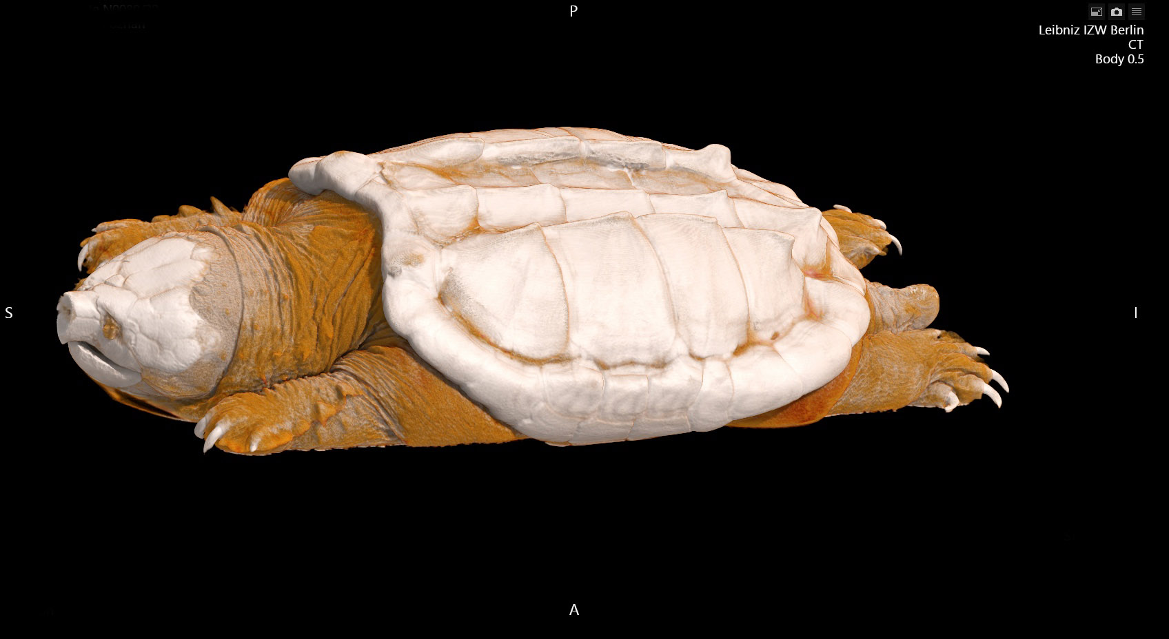 The Leibniz-IZW operates a high-performance computed tomograph and offers services in the field of (wild) animal computed tomography. With a 640-line volume scan mode and a resolution of <0.25 mm, the CT enables real-time imaging of dynamic processes or the flooding and flooding of contrast medium in defined organ systems and is the most powerful CT in veterinary medicine worldwide. The device can also be used to analyse the mineral composition of tissues such as bones. The services offered include the examination of valuable stocks from archives and museum materials, the determination of the state of reproduction and the supervision of a patient service unit by a veterinarian and a radiological-technical assistant.