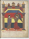 [edit]HIC POPULUS DOMINI ET HABITAUIT DEUS CUM EIS ET REGNABUNT IN SECULA SECULORUM / HIC LIGNUM FACIENS FRUCTUS DUO DECIM PER SINGULOS MENSES and HIC MONS SION DE QUO ANGELUS SANCTO IOHANNI CIUITATEM IHERUSALEM OSTENDIT